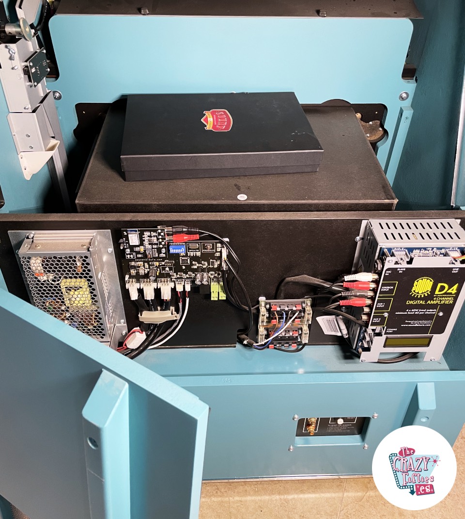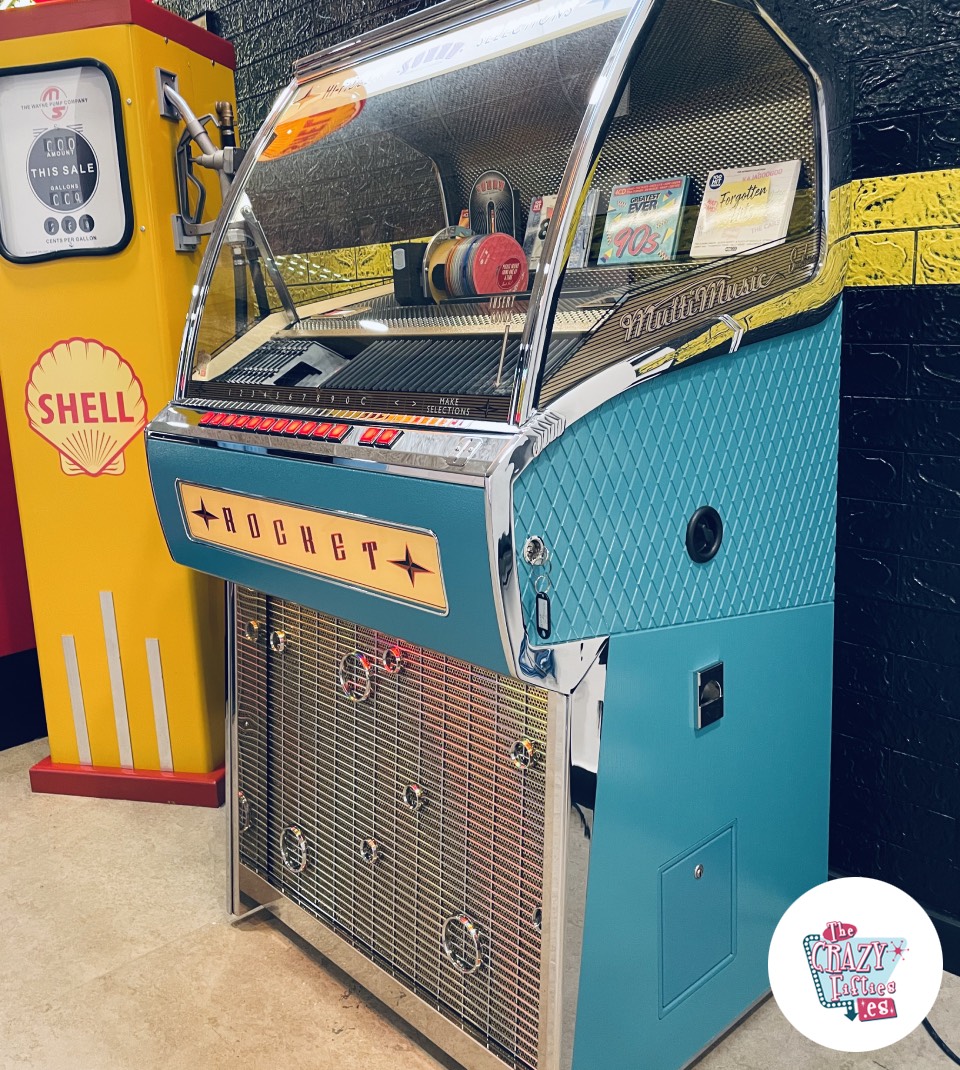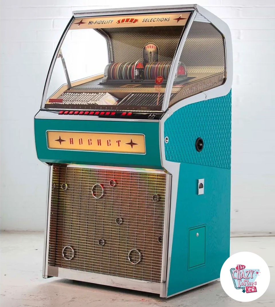 Se trata del modelo mítico Rocket 88 el cual debe su nombre a la canción Rocket 88 de Jackie Brenston and the Delta Cats. El diseño esta basado en el coche oldsmobile que inspiro la canción, con un estilo totalmente retro de los años 50, desde el diseño de la estructura hasta la tipografía. Esta preciosidad cuenta con unas prestaciones de audio de gama profesional, con un amplificador de 60 Watt RMS, altavoces de 5 vias, carrusel de 80 cds, control remoto y cajón recolector de monedas entre otros.